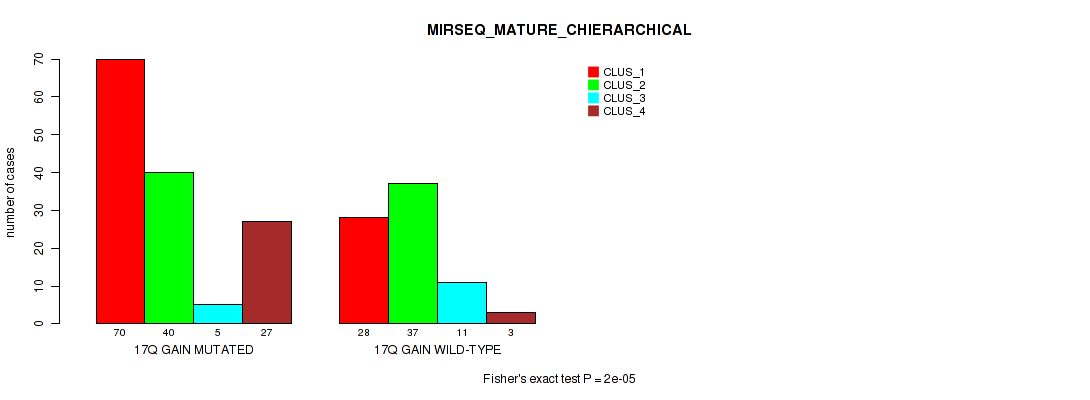 17q gain cnv correlated to 'CN_CNMF', 'METHLYATION_CNMF', 'RPPA_CNMF', 'RPPA_CHIERARCHICAL', 'MRNASEQ_CNMF', 'MRNASEQ_CHIERARCHICAL', 'MIRSEQ_CNMF', 'MIRSEQ_CHIERARCHICAL', 'MIRSEQ_MATURE_CNMF', and 'MIRSEQ_MATURE_CHIERARCHICAL'.