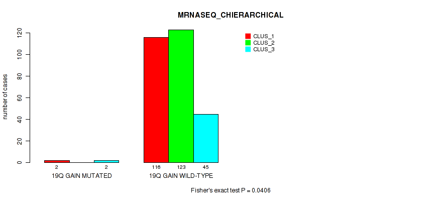 19p gain cnv correlated to 'CN_CNMF', 'MRNASEQ_CNMF', and 'MRNASEQ_CHIERARCHICAL'.
