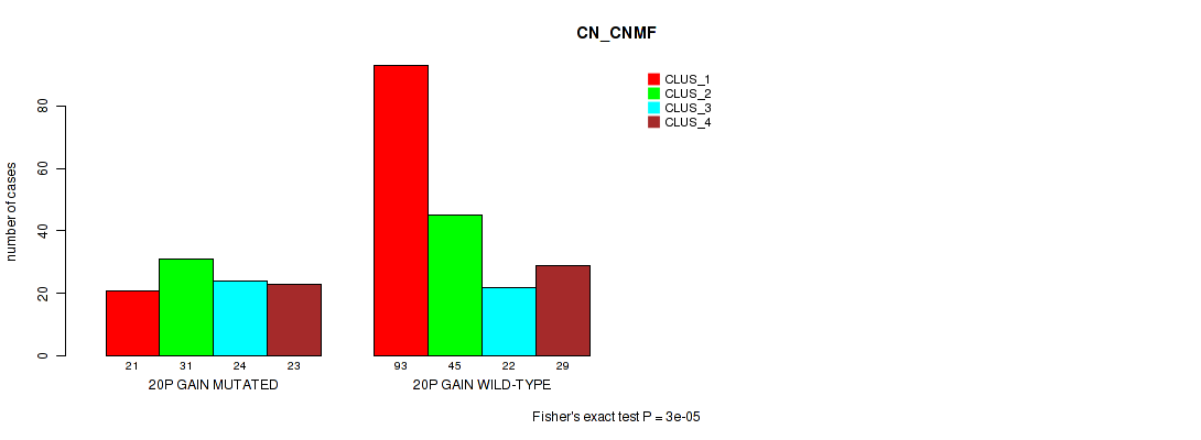 20p gain cnv correlated to 'CN_CNMF', 'METHLYATION_CNMF', 'RPPA_CNMF', 'RPPA_CHIERARCHICAL', 'MRNASEQ_CNMF', 'MRNASEQ_CHIERARCHICAL', 'MIRSEQ_CNMF', and 'MIRSEQ_CHIERARCHICAL'.