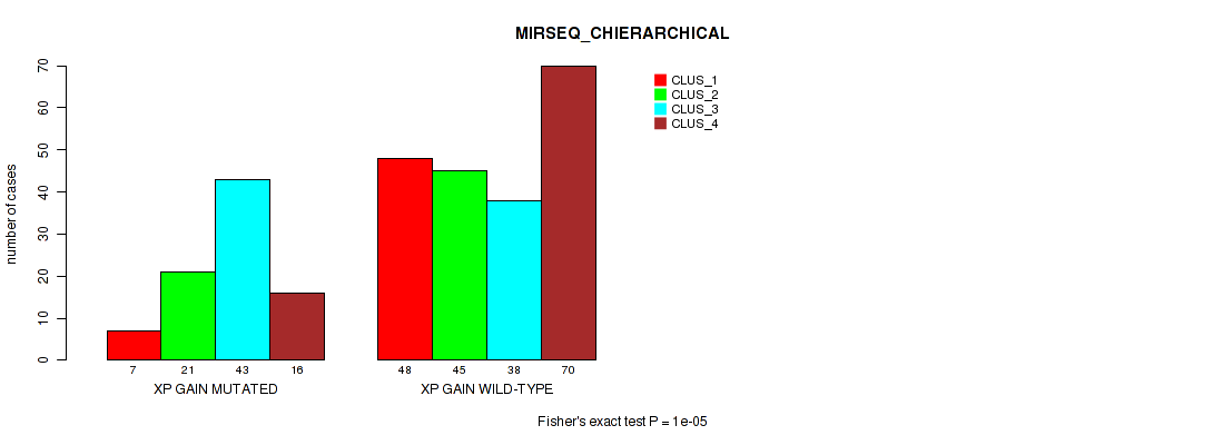 Table S369. Gene #73: 'xp loss' versus Molecular Subtype #10: 'MIRSEQ_MATURE_CHIERARCHICAL'