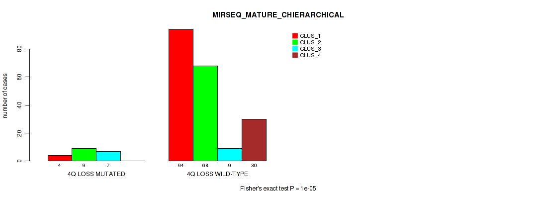 4q loss cnv correlated to 'CN_CNMF', 'METHLYATION_CNMF', 'RPPA_CHIERARCHICAL', 'MRNASEQ_CNMF', 'MRNASEQ_CHIERARCHICAL', 'MIRSEQ_MATURE_CNMF', and 'MIRSEQ_MATURE_CHIERARCHICAL'.