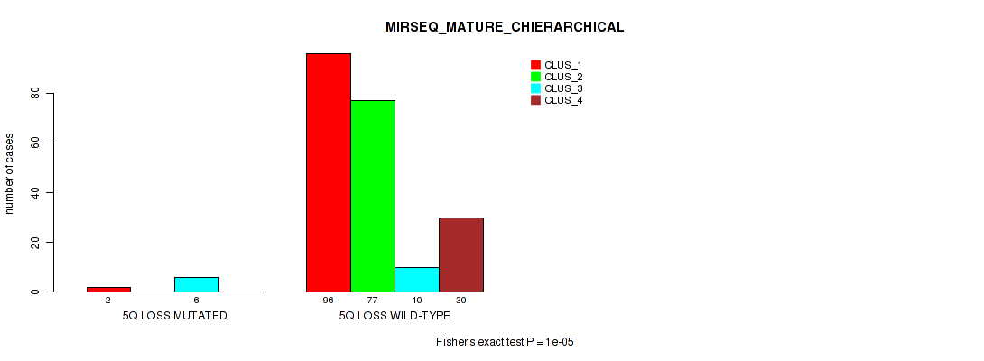 5q loss cnv correlated to 'METHLYATION_CNMF', 'RPPA_CHIERARCHICAL', 'MRNASEQ_CNMF', 'MRNASEQ_CHIERARCHICAL', 'MIRSEQ_CHIERARCHICAL', 'MIRSEQ_MATURE_CNMF', and 'MIRSEQ_MATURE_CHIERARCHICAL'.