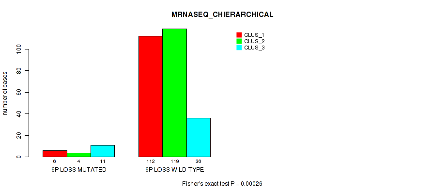 6p loss cnv correlated to 'CN_CNMF', 'METHLYATION_CNMF', 'MRNASEQ_CNMF', 'MRNASEQ_CHIERARCHICAL', and 'MIRSEQ_CNMF'.