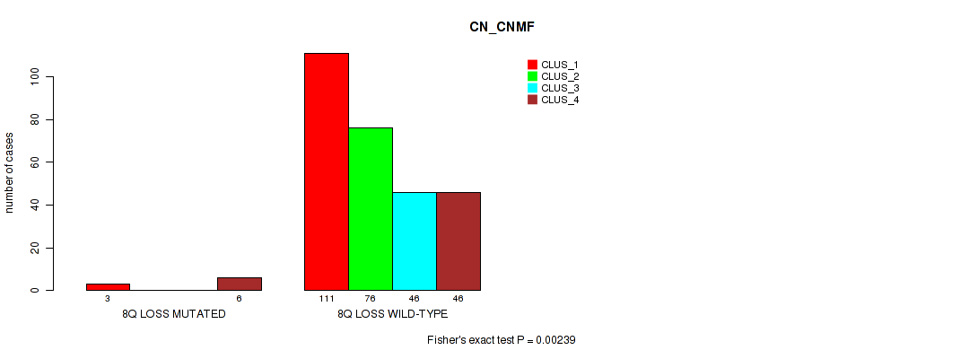 8q loss cnv correlated to 'CN_CNMF', 'RPPA_CHIERARCHICAL', 'MRNASEQ_CNMF', and 'MRNASEQ_CHIERARCHICAL'.
