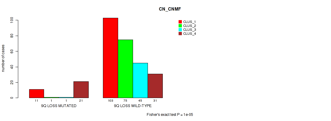 9q loss cnv correlated to 'CN_CNMF', 'METHLYATION_CNMF', 'RPPA_CHIERARCHICAL', 'MRNASEQ_CNMF', 'MRNASEQ_CHIERARCHICAL', 'MIRSEQ_CNMF', 'MIRSEQ_MATURE_CNMF', and 'MIRSEQ_MATURE_CHIERARCHICAL'.