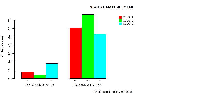 9p gain cnv correlated to 'MRNASEQ_CHIERARCHICAL' and 'MIRSEQ_MATURE_CHIERARCHICAL'.