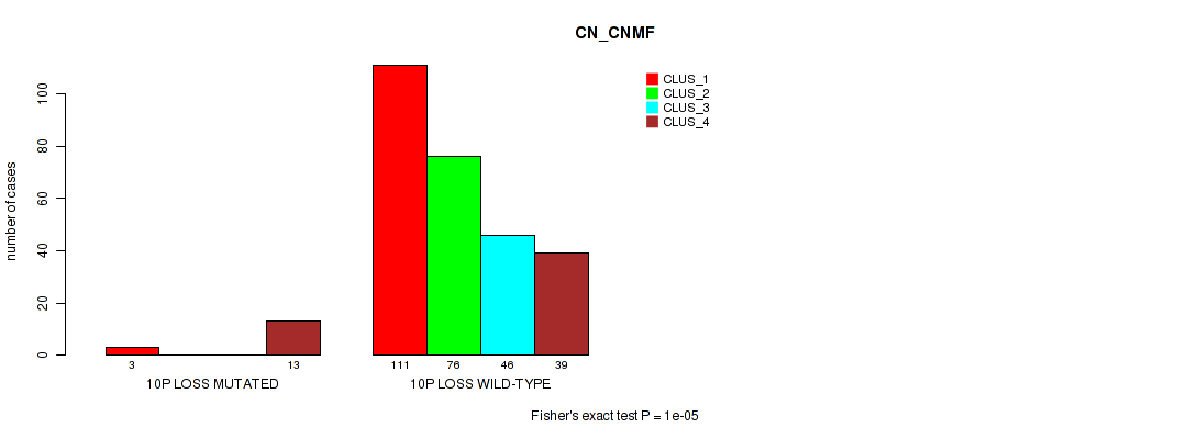 10p loss cnv correlated to 'CN_CNMF', 'METHLYATION_CNMF', 'RPPA_CHIERARCHICAL', 'MRNASEQ_CNMF', 'MRNASEQ_CHIERARCHICAL', 'MIRSEQ_MATURE_CNMF', and 'MIRSEQ_MATURE_CHIERARCHICAL'.