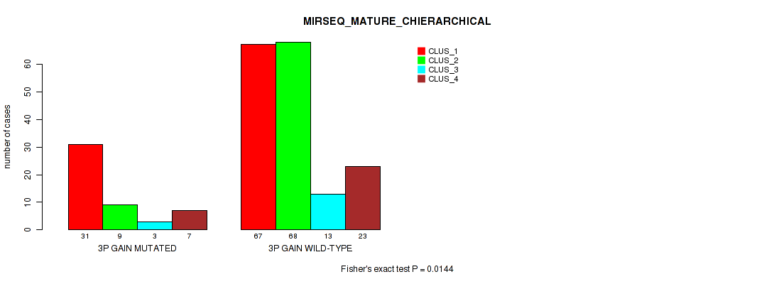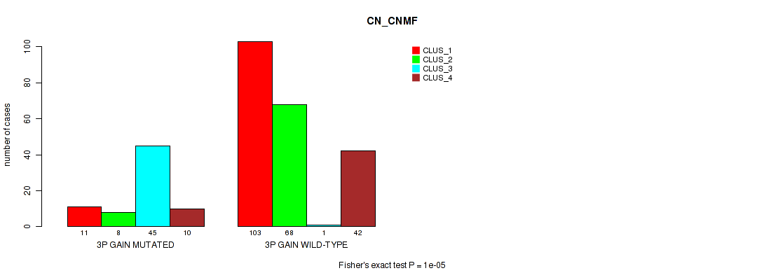 3p gain cnv correlated to 'CN_CNMF', 'METHLYATION_CNMF', 'RPPA_CHIERARCHICAL', 'MRNASEQ_CNMF', 'MRNASEQ_CHIERARCHICAL', 'MIRSEQ_CNMF', 'MIRSEQ_CHIERARCHICAL', and 'MIRSEQ_MATURE_CHIERARCHICAL'.