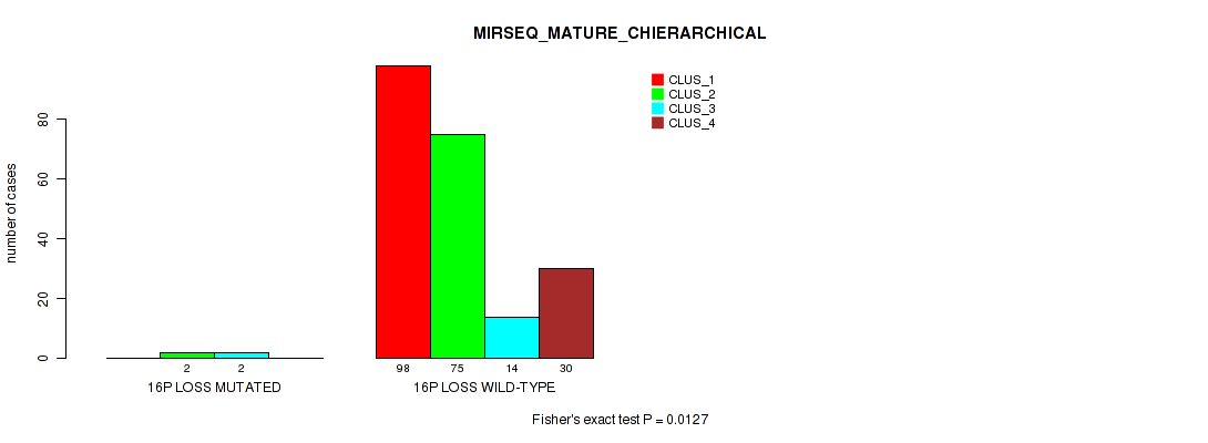 16p loss cnv correlated to 'CN_CNMF', 'METHLYATION_CNMF', 'MRNASEQ_CNMF', 'MRNASEQ_CHIERARCHICAL', and 'MIRSEQ_MATURE_CHIERARCHICAL'.