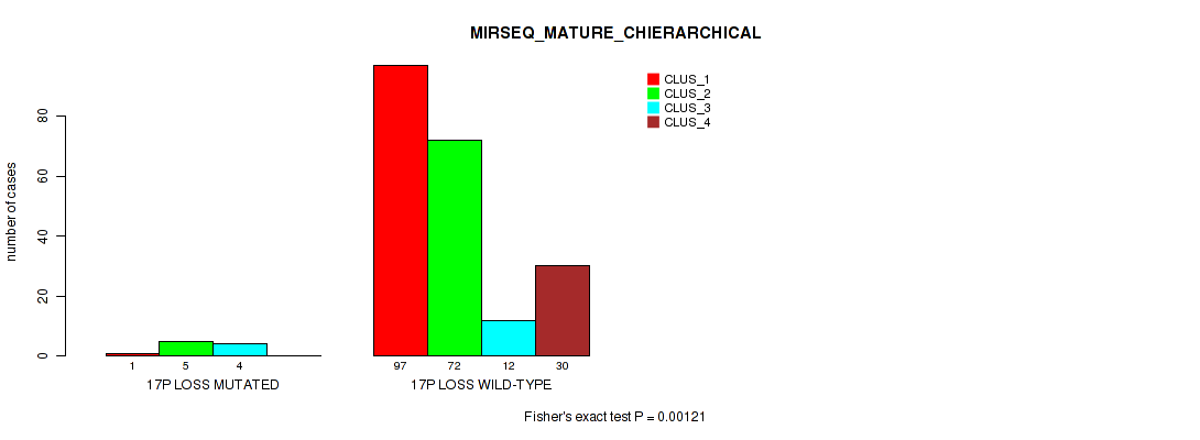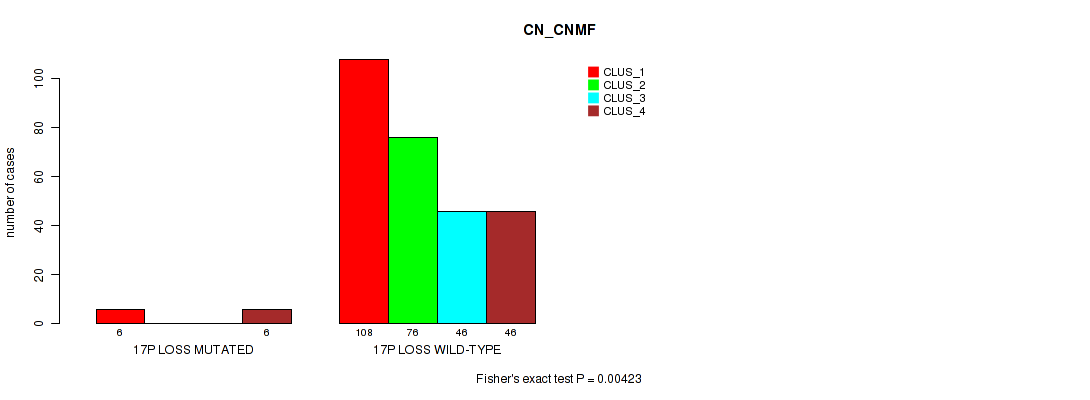 17p loss cnv correlated to 'CN_CNMF', 'METHLYATION_CNMF', 'MRNASEQ_CNMF', 'MRNASEQ_CHIERARCHICAL', 'MIRSEQ_MATURE_CNMF', and 'MIRSEQ_MATURE_CHIERARCHICAL'.