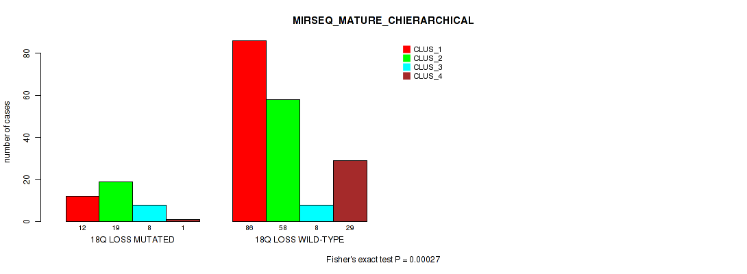 18q loss cnv correlated to 'CN_CNMF', 'METHLYATION_CNMF', 'RPPA_CHIERARCHICAL', 'MRNASEQ_CNMF', 'MRNASEQ_CHIERARCHICAL', 'MIRSEQ_CHIERARCHICAL', 'MIRSEQ_MATURE_CNMF', and 'MIRSEQ_MATURE_CHIERARCHICAL'.