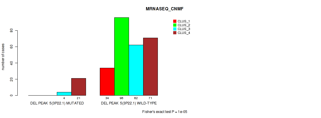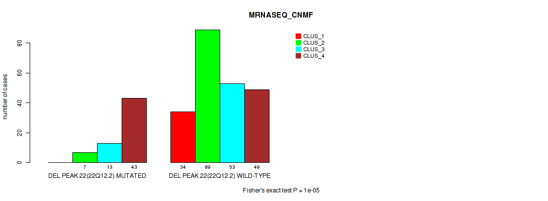 Figure S174. Get High-res Image Gene #29: 'del_22q12.2' versus Molecular Subtype #5: 'MRNASEQ_CNMF'