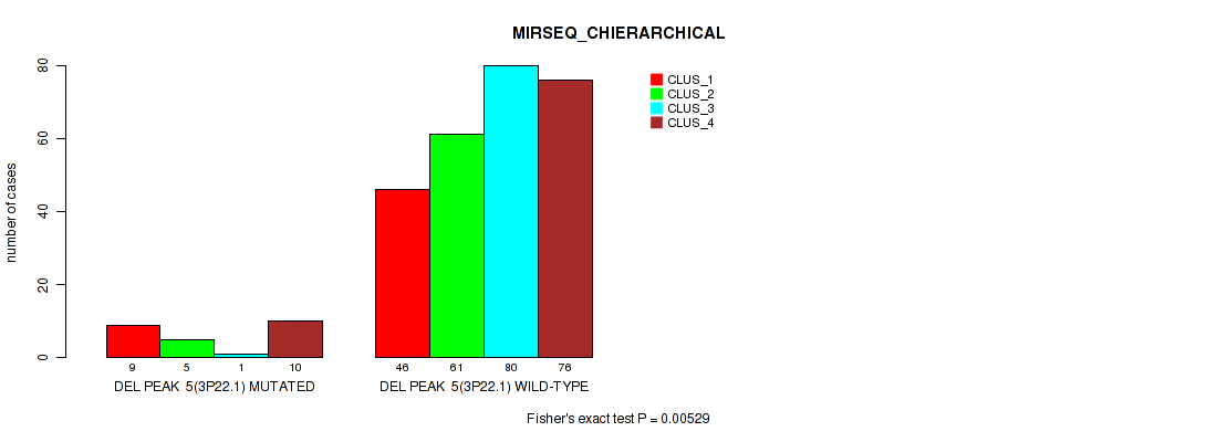 Figure S177. Get High-res Image Gene #29: 'del_22q12.2' versus Molecular Subtype #10: 'MIRSEQ_MATURE_CHIERARCHICAL'