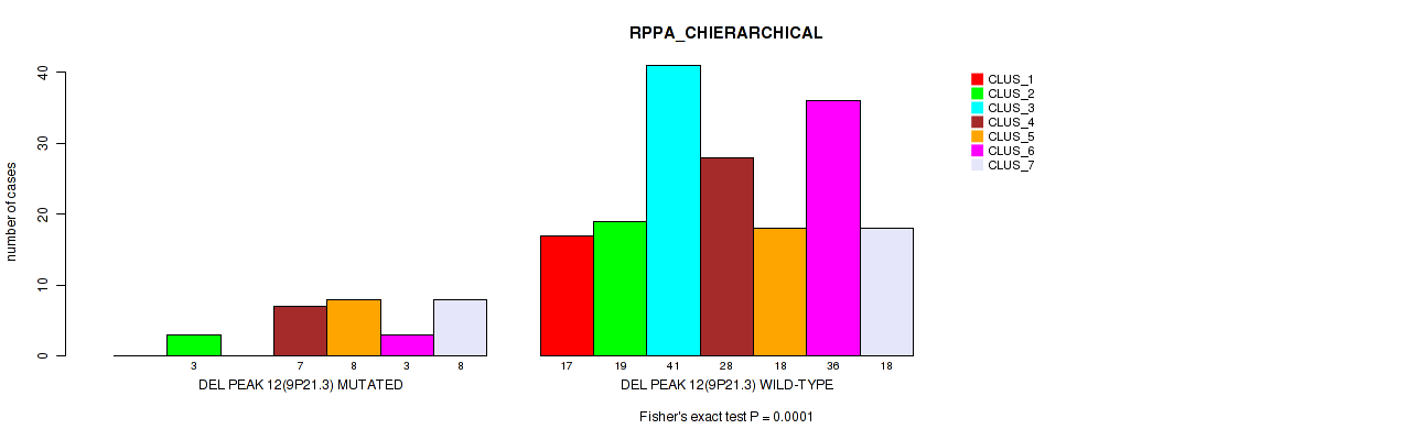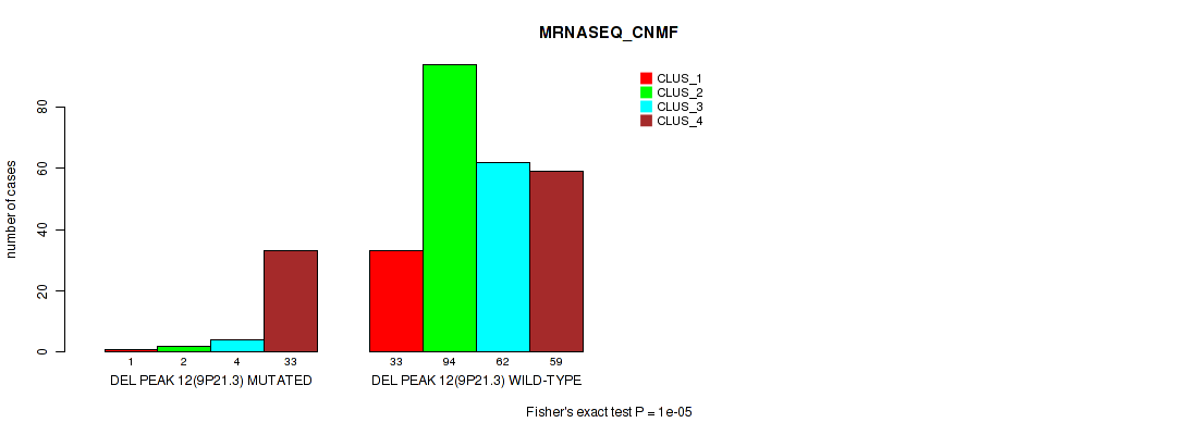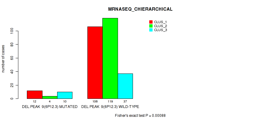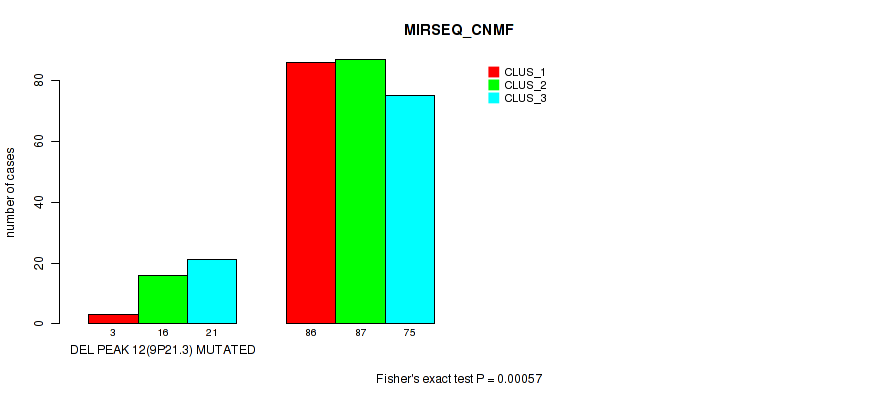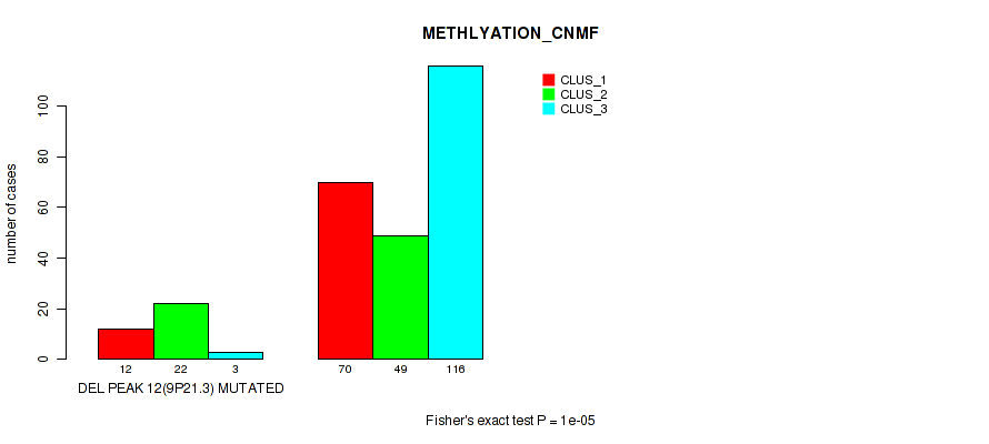 del_9p21.3 cnv correlated to 'CN_CNMF', 'METHLYATION_CNMF', 'RPPA_CHIERARCHICAL', 'MRNASEQ_CNMF', 'MRNASEQ_CHIERARCHICAL', 'MIRSEQ_CNMF', 'MIRSEQ_CHIERARCHICAL', 'MIRSEQ_MATURE_CNMF', and 'MIRSEQ_MATURE_CHIERARCHICAL'.