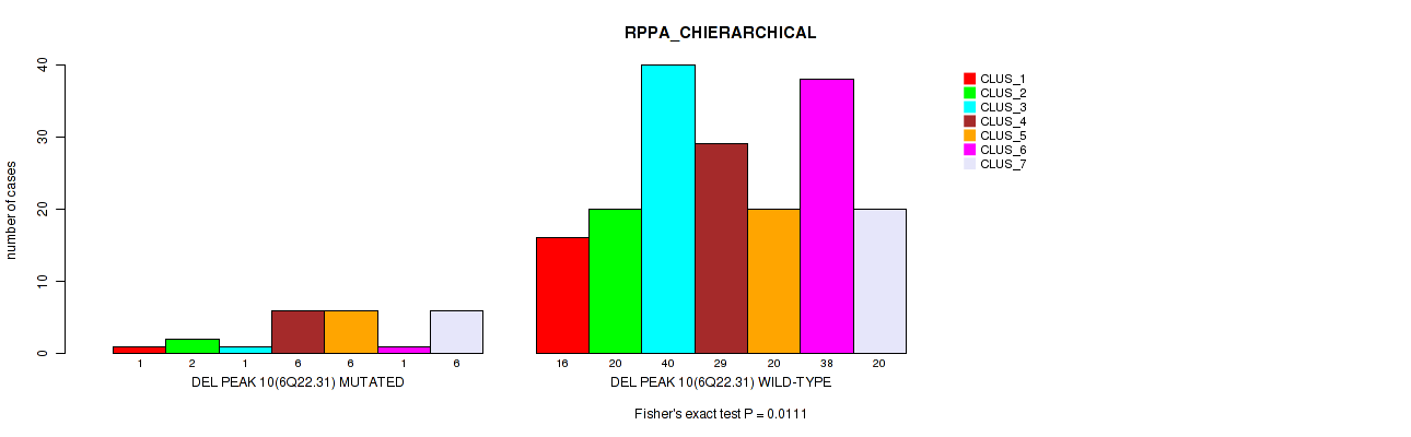 Figure S187. Get High-res Image Gene #31: 'del_xq28' versus Molecular Subtype #4: 'RPPA_CHIERARCHICAL'