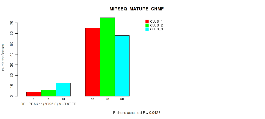 del_6q25.3 cnv correlated to 'CN_CNMF', 'METHLYATION_CNMF', 'RPPA_CHIERARCHICAL', 'MRNASEQ_CNMF', 'MRNASEQ_CHIERARCHICAL', and 'MIRSEQ_MATURE_CNMF'.