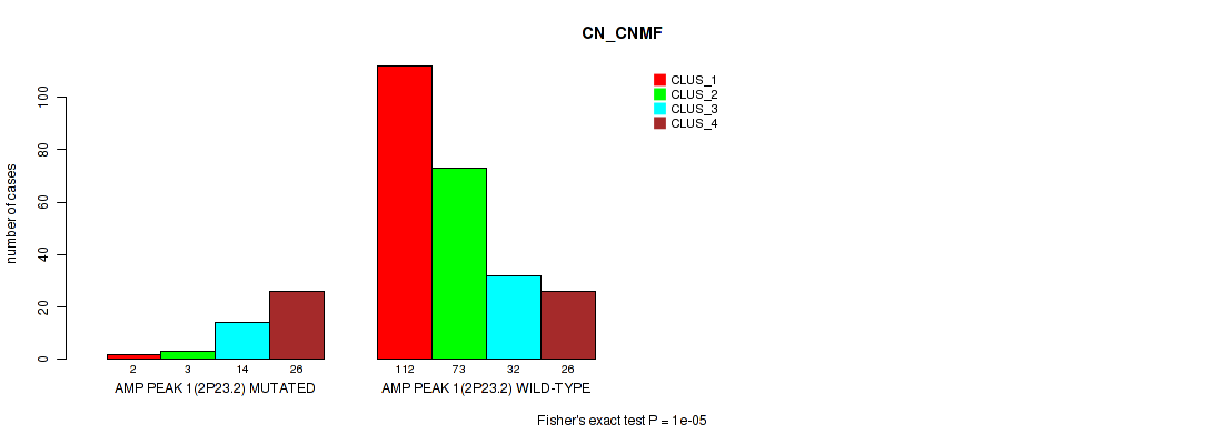 amp_2p23.2 cnv correlated to 'CN_CNMF', 'METHLYATION_CNMF', and 'RPPA_CHIERARCHICAL'.