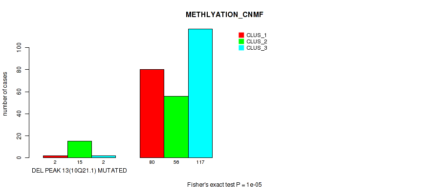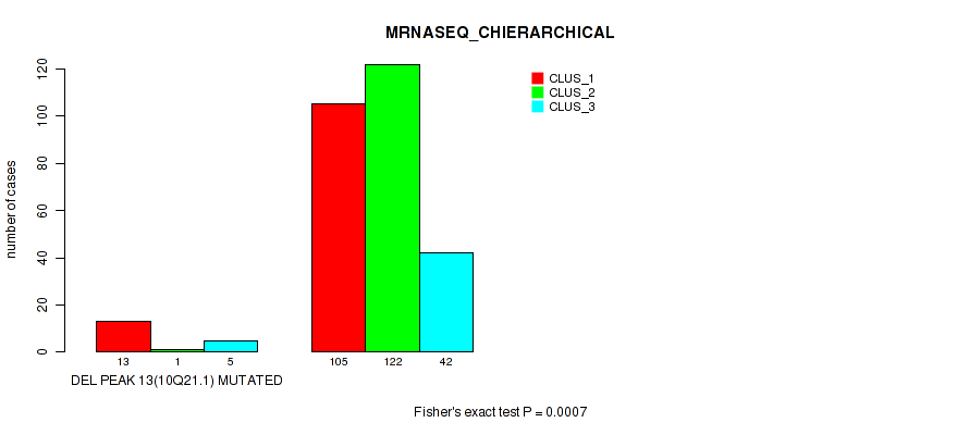 del_10q21.1 cnv correlated to 'CN_CNMF', 'METHLYATION_CNMF', 'RPPA_CHIERARCHICAL', 'MRNASEQ_CNMF', 'MRNASEQ_CHIERARCHICAL', 'MIRSEQ_MATURE_CNMF', and 'MIRSEQ_MATURE_CHIERARCHICAL'.