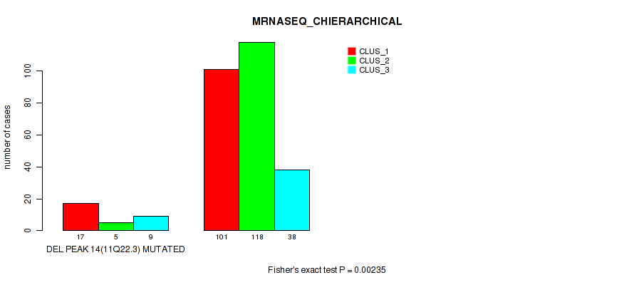 del_14q11.2 cnv correlated to 'CN_CNMF', 'METHLYATION_CNMF', 'RPPA_CHIERARCHICAL', 'MRNASEQ_CNMF', 'MRNASEQ_CHIERARCHICAL', 'MIRSEQ_MATURE_CNMF', and 'MIRSEQ_MATURE_CHIERARCHICAL'.