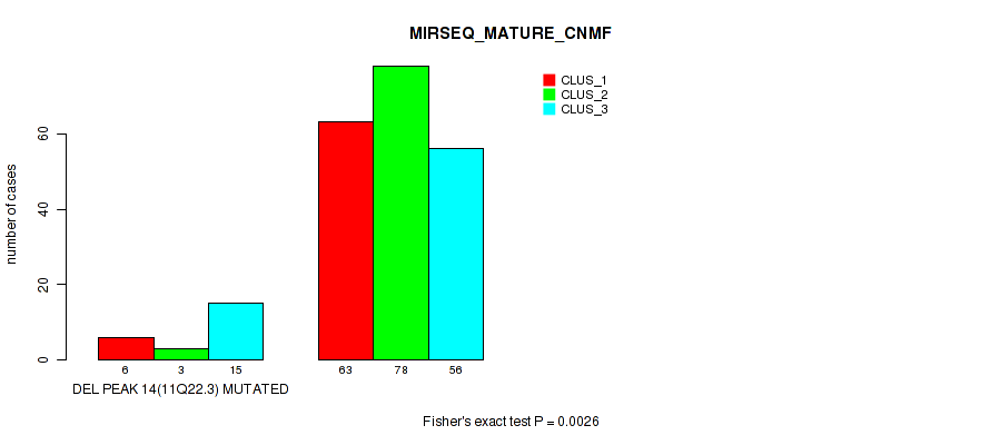 del_11q22.3 cnv correlated to 'CN_CNMF', 'METHLYATION_CNMF', 'MRNASEQ_CNMF', 'MRNASEQ_CHIERARCHICAL', 'MIRSEQ_MATURE_CNMF', and 'MIRSEQ_MATURE_CHIERARCHICAL'.