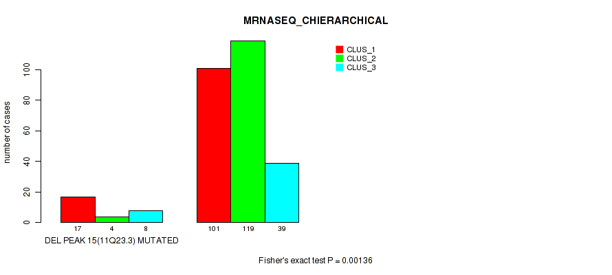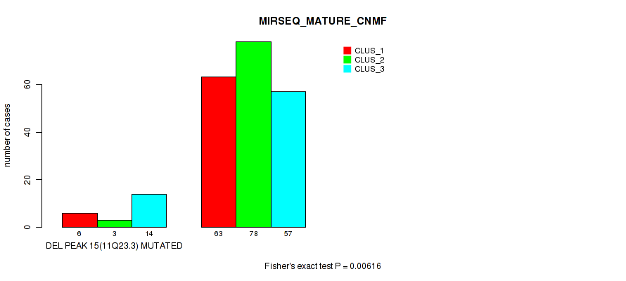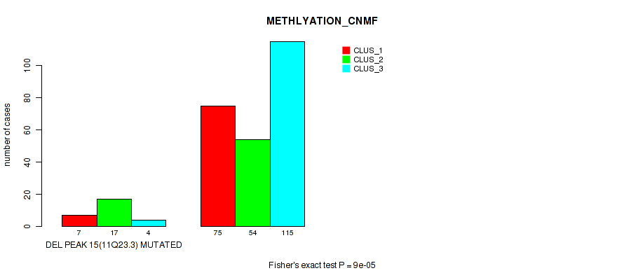 del_11q23.3 cnv correlated to 'CN_CNMF', 'METHLYATION_CNMF', 'MRNASEQ_CNMF', 'MRNASEQ_CHIERARCHICAL', 'MIRSEQ_MATURE_CNMF', and 'MIRSEQ_MATURE_CHIERARCHICAL'.