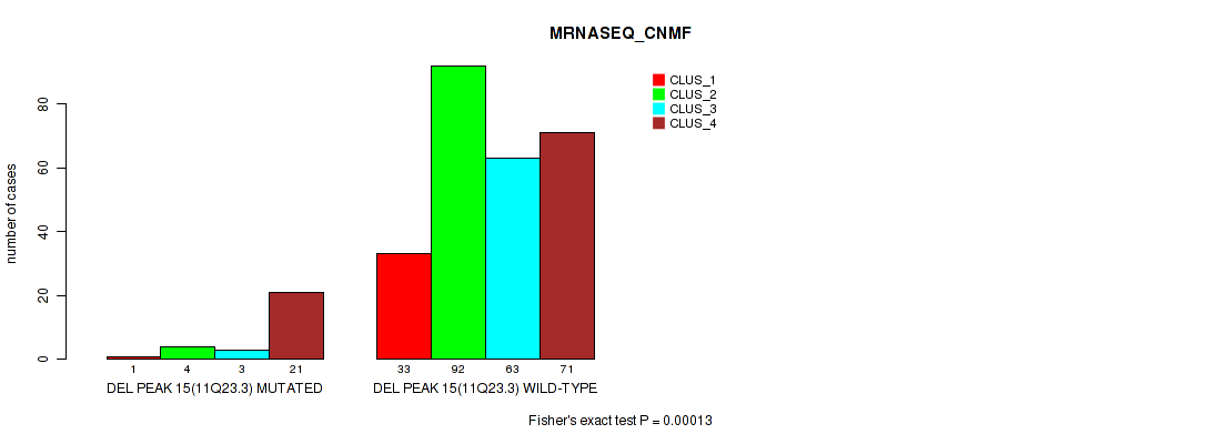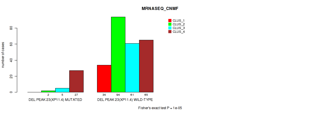 Figure S181. Get High-res Image Gene #30: 'del_xp11.4' versus Molecular Subtype #5: 'MRNASEQ_CNMF'