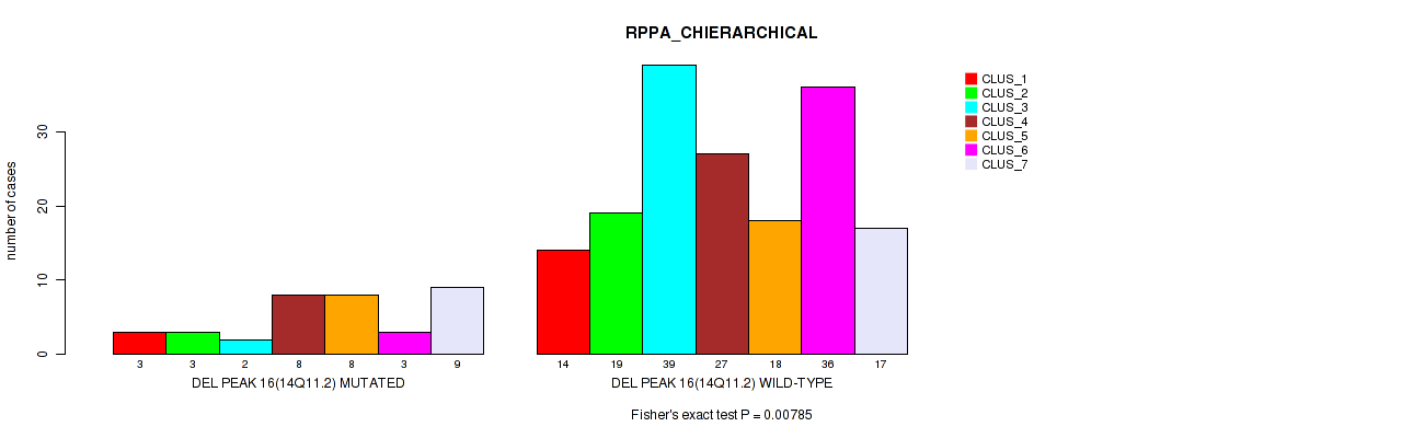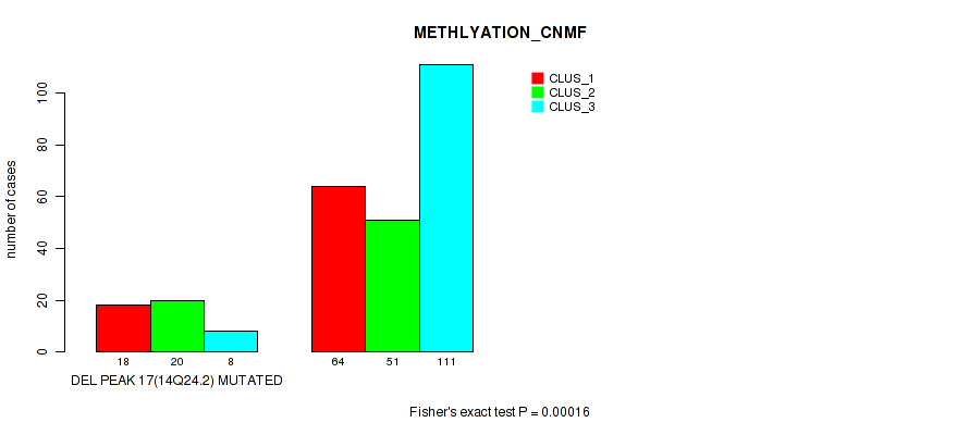 del_14q24.2 cnv correlated to 'CN_CNMF', 'METHLYATION_CNMF', 'RPPA_CHIERARCHICAL', 'MRNASEQ_CNMF', 'MRNASEQ_CHIERARCHICAL', 'MIRSEQ_MATURE_CNMF', and 'MIRSEQ_MATURE_CHIERARCHICAL'.