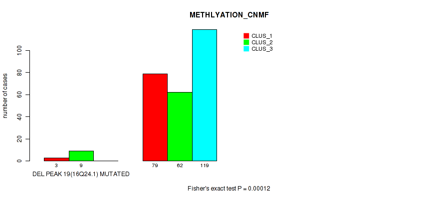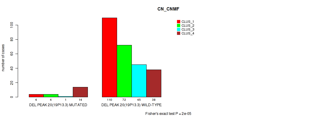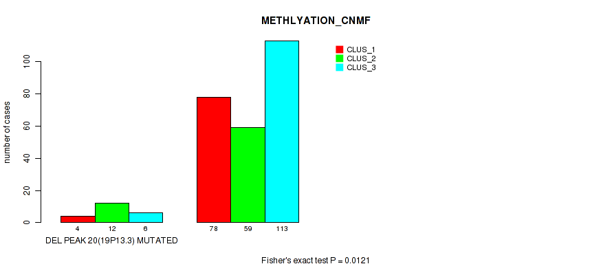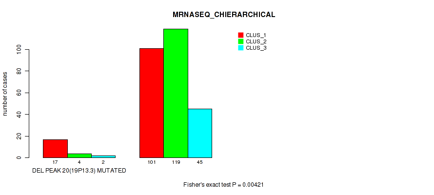 del_19p13.3 cnv correlated to 'CN_CNMF', 'METHLYATION_CNMF', 'MRNASEQ_CNMF', 'MRNASEQ_CHIERARCHICAL', and 'MIRSEQ_MATURE_CHIERARCHICAL'.