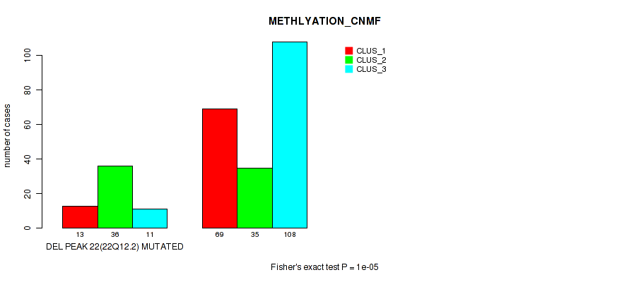 Table S172. Gene #29: 'del_22q12.2' versus Molecular Subtype #2: 'METHLYATION_CNMF'