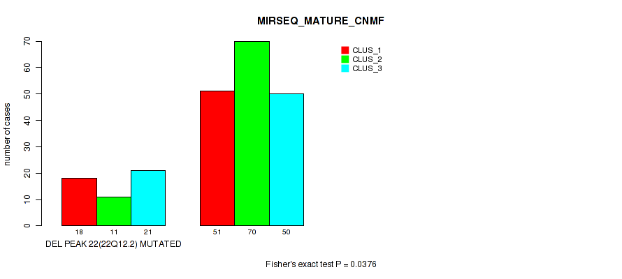 Figure S176. Get High-res Image Gene #29: 'del_22q12.2' versus Molecular Subtype #9: 'MIRSEQ_MATURE_CNMF'