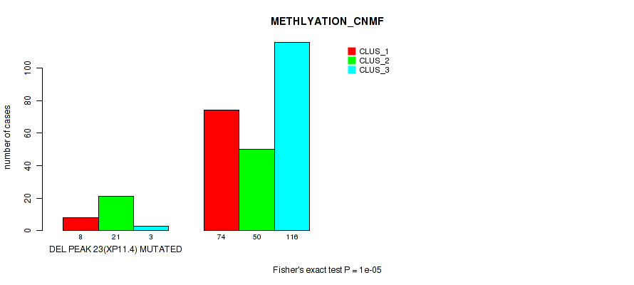 Table S179. Gene #30: 'del_xp11.4' versus Molecular Subtype #2: 'METHLYATION_CNMF'