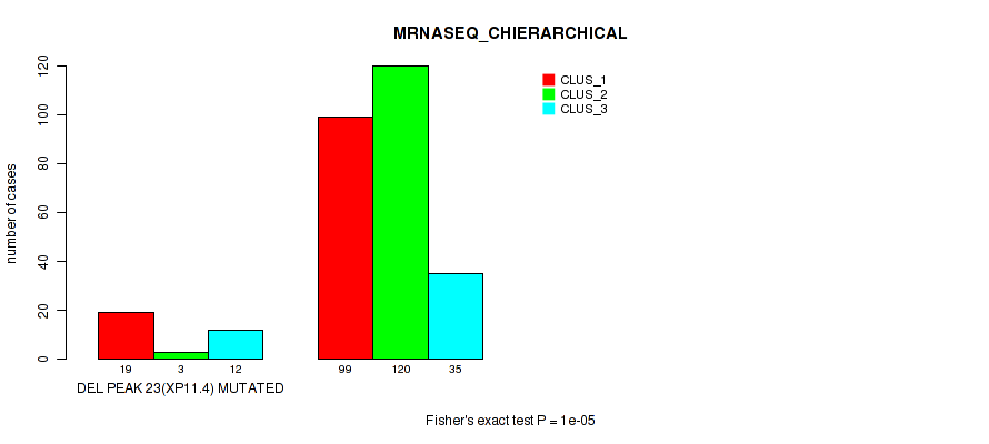 Figure S184. Get High-res Image Gene #30: 'del_xp11.4' versus Molecular Subtype #10: 'MIRSEQ_MATURE_CHIERARCHICAL'