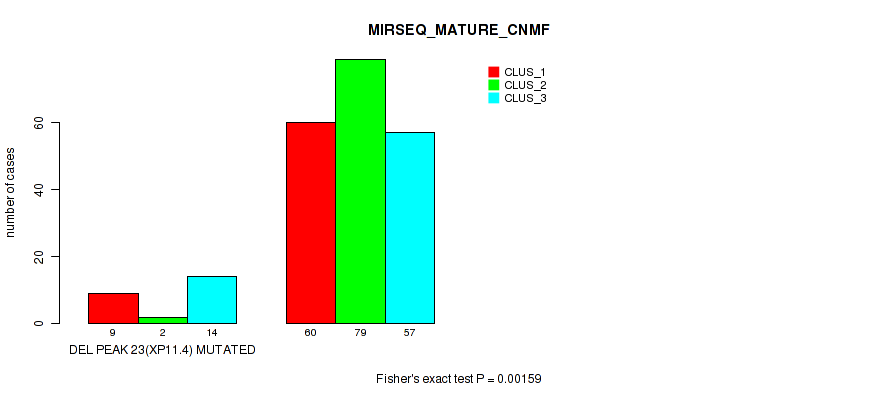 Table S183. Gene #30: 'del_xp11.4' versus Molecular Subtype #9: 'MIRSEQ_MATURE_CNMF'