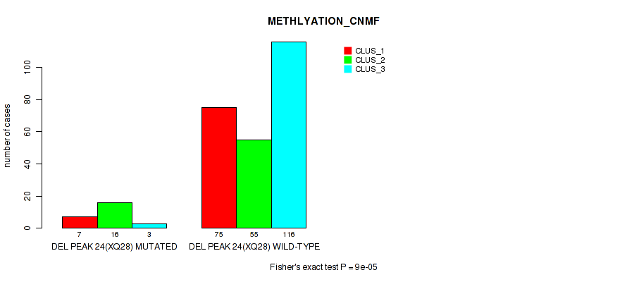 Figure S186. Get High-res Image Gene #31: 'del_xq28' versus Molecular Subtype #2: 'METHLYATION_CNMF'