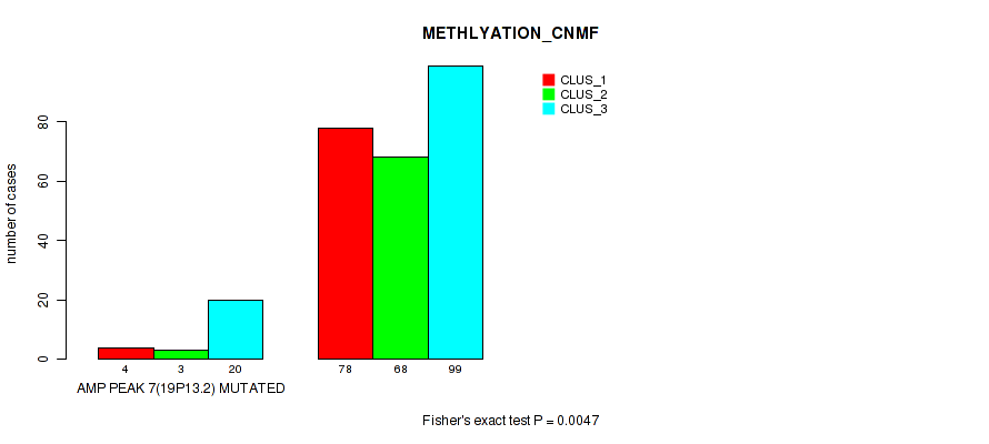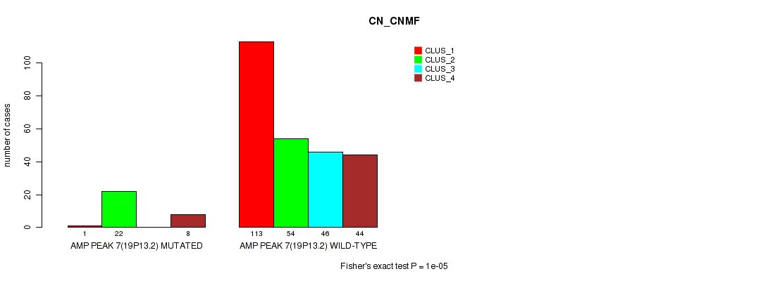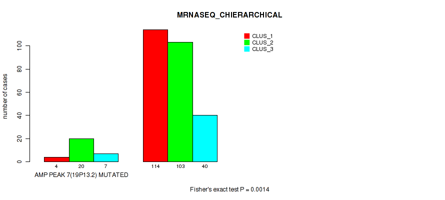 amp_19p13.2 cnv correlated to 'CN_CNMF', 'METHLYATION_CNMF', 'RPPA_CNMF', 'RPPA_CHIERARCHICAL', 'MRNASEQ_CNMF', 'MRNASEQ_CHIERARCHICAL', and 'MIRSEQ_MATURE_CHIERARCHICAL'.