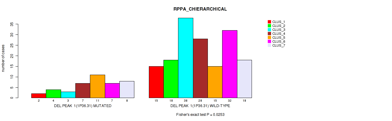 del_1p36.31 cnv correlated to 'CN_CNMF', 'METHLYATION_CNMF', 'RPPA_CHIERARCHICAL', 'MRNASEQ_CNMF', 'MRNASEQ_CHIERARCHICAL', 'MIRSEQ_MATURE_CNMF', and 'MIRSEQ_MATURE_CHIERARCHICAL'.