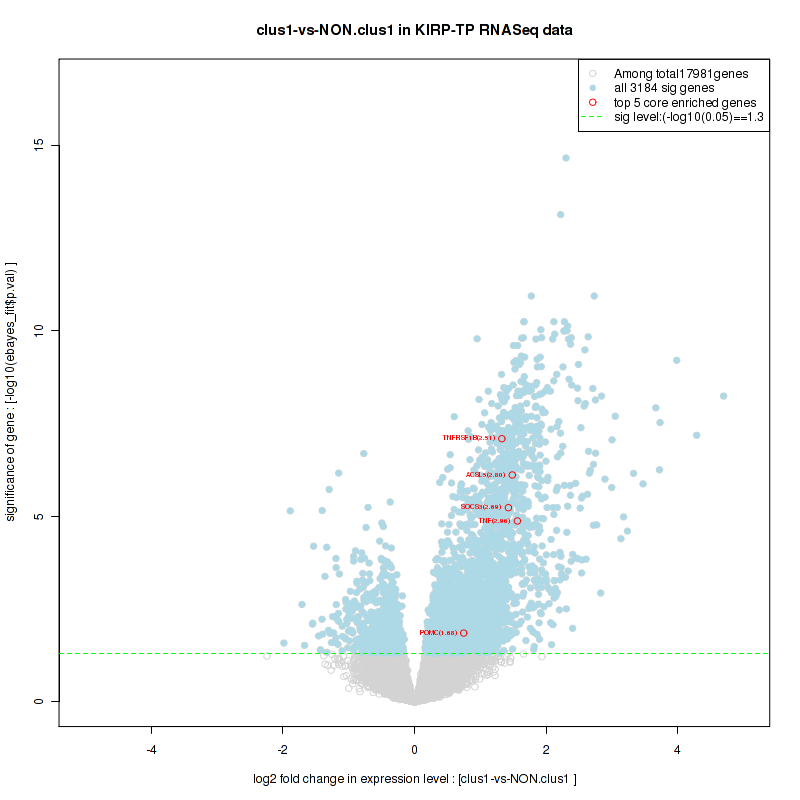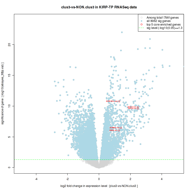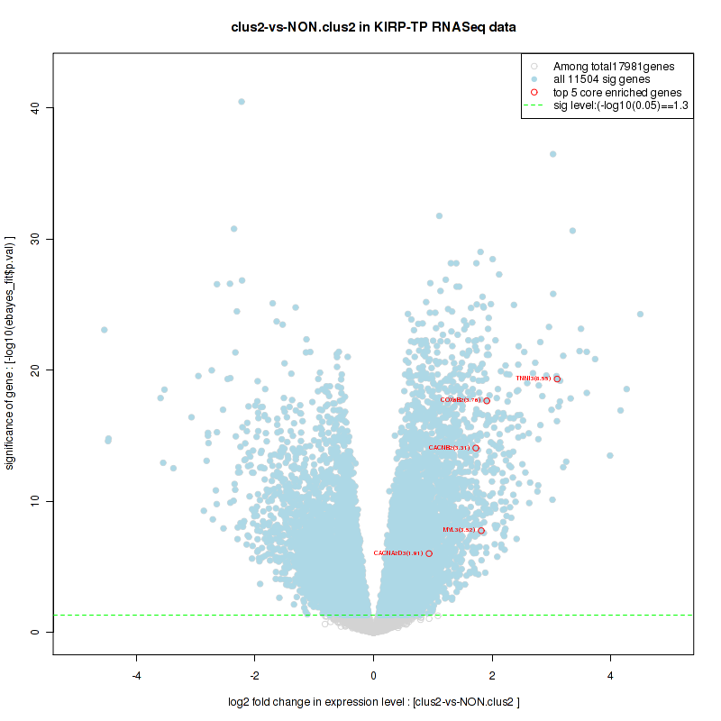 Figure S80. Get High-res Image For the top 5 core enriched genes in the pathway: KEGG OOCYTE MEIOSIS, this volcano plot shows how much they are up/down-regulated and significant. The significance was calculated by empirical bayesian fit
