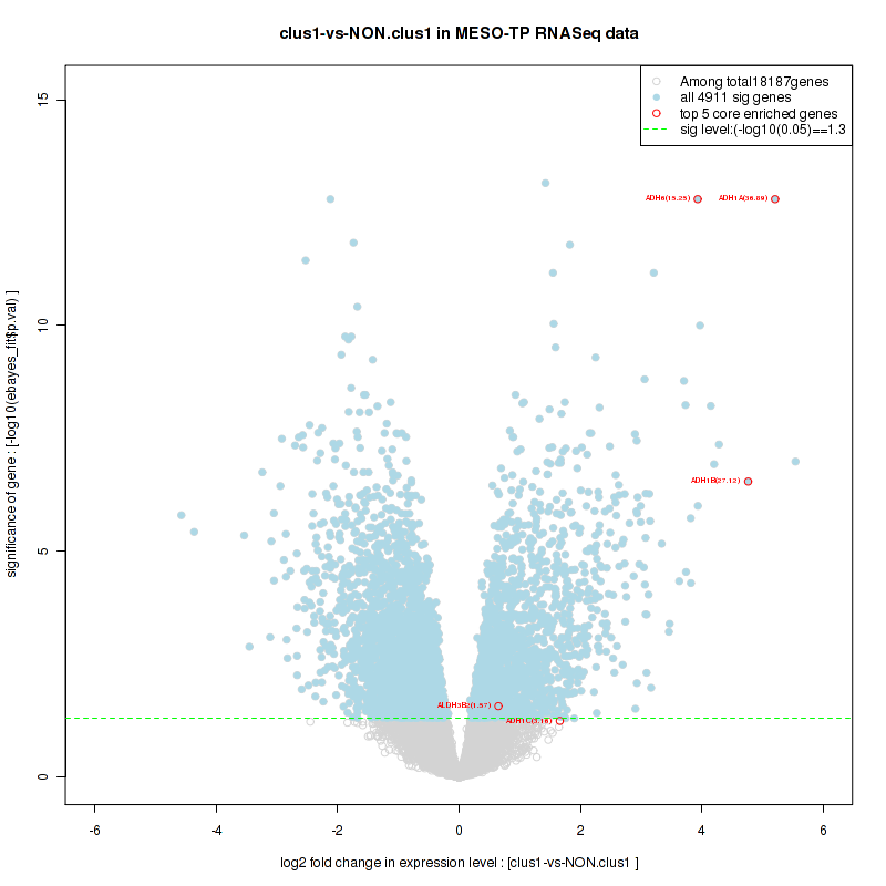 • And common core enriched genes are ADH1A, ADH1B, ADH1C, ADH4, ADH6, ALDH2, ALDH3A2, ACADS, ADH5, ALDH3B1