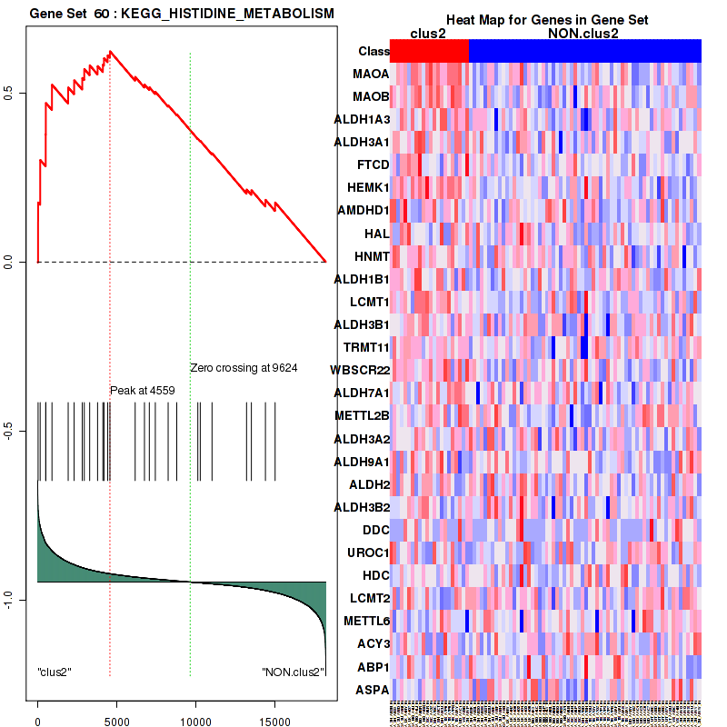 Table S1.  Get Full Table This table shows a Running Enrichment Score (RES) of each gene in this pathway, that is, the enrichment score at this point in the ranked list of genes. All genes are ranked by Signal-to-Noise (S2N), a measure of similarity as default and are used to obtain ES matrix of all genes. In this way, GSEA tool uses expression pattern of not only overlapped genes but also not-overlapped genes to produce ES matrix.