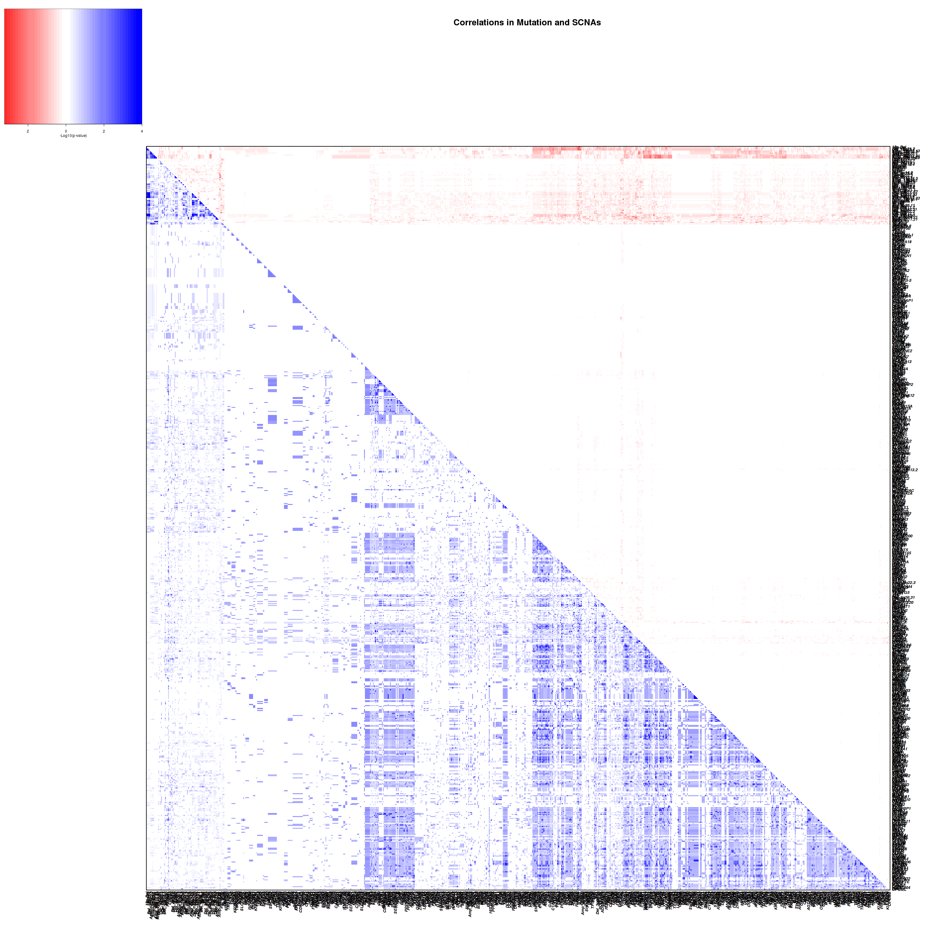 Figure 4. Get High-res Image Co-occurring and mutually-exclusive pairs for all copy number and mutation events. Blue means two events are co-occurring and red means two events are mutually-exclusive.