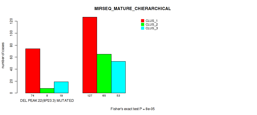Figure S578. Get High-res Image Gene #86: 'del_22q13.31' versus Molecular Subtype #8: 'MIRSEQ_CHIERARCHICAL'