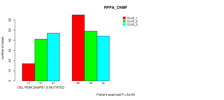 del_9p21.3 cnv correlated to 'CN_CNMF', 'METHLYATION_CNMF', 'RPPA_CNMF', 'RPPA_CHIERARCHICAL', 'MRNASEQ_CNMF', 'MRNASEQ_CHIERARCHICAL', 'MIRSEQ_CNMF', 'MIRSEQ_CHIERARCHICAL', 'MIRSEQ_MATURE_CNMF', and 'MIRSEQ_MATURE_CHIERARCHICAL'.