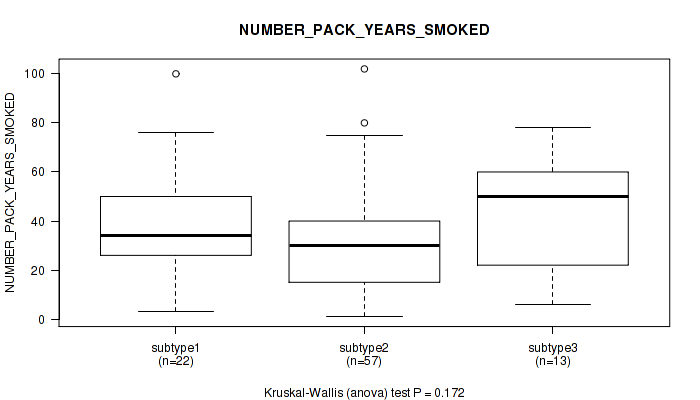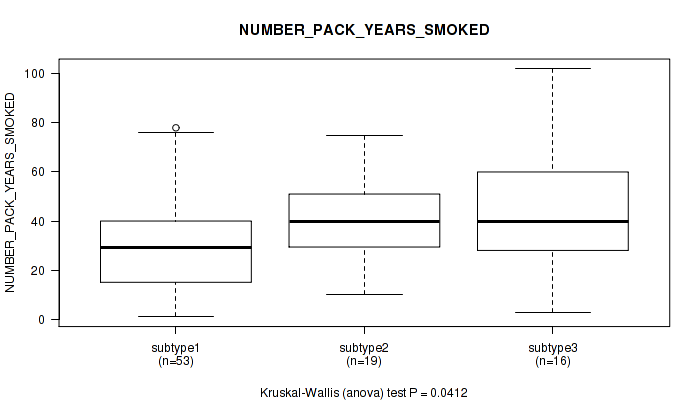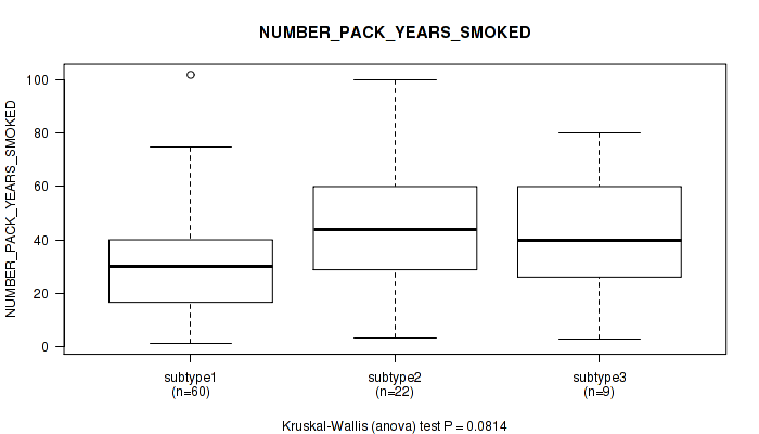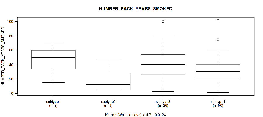 | NUMBER PACK YEARS SMOKED | Kruskal-Wallis (anova) |