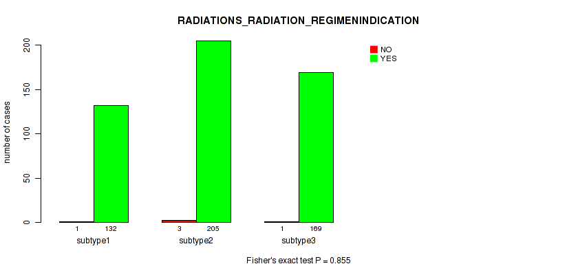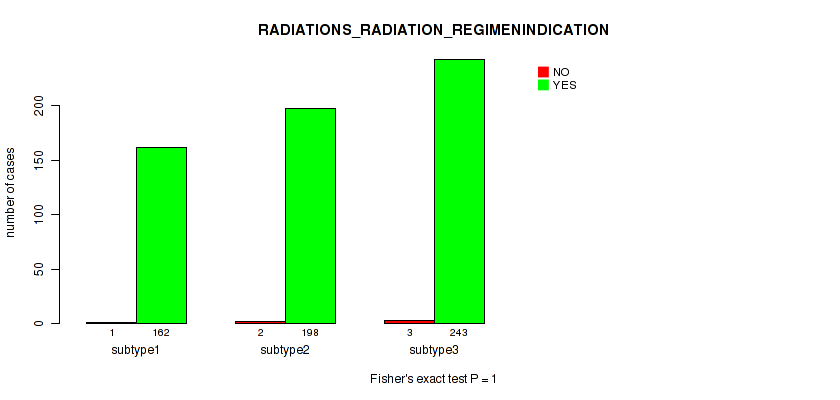 | RADIATIONS RADIATION REGIMENINDICATION | Fisher's exact test |