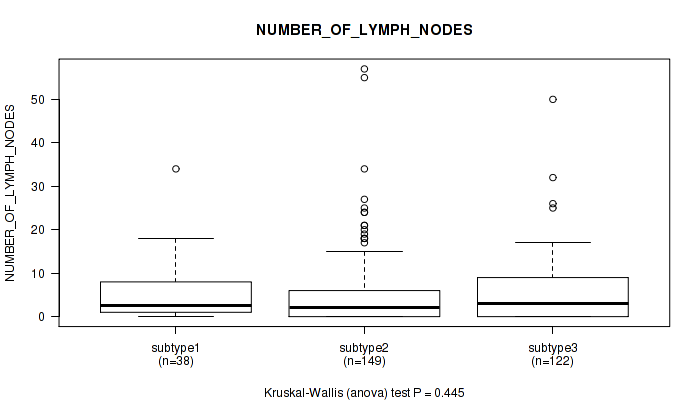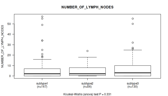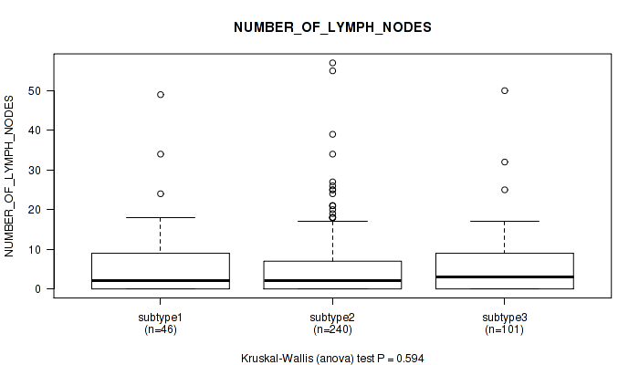 Figure S110. Get High-res Image Clustering Approach #8: 'MIRseq Mature cHierClus subtypes' versus Clinical Feature #12: 'NUMBER_OF_LYMPH_NODES'