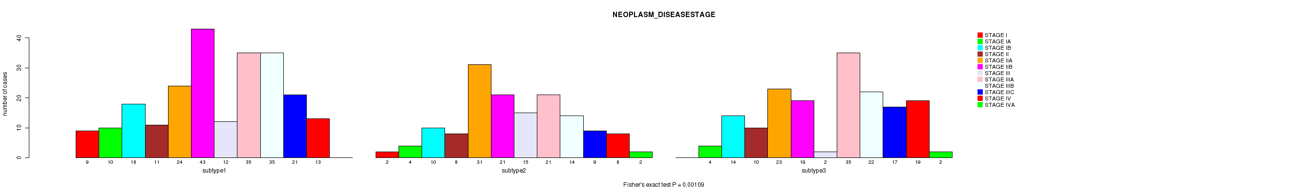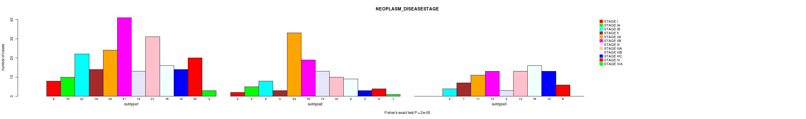 | NEOPLASM DISEASESTAGE | Fisher's exact test |