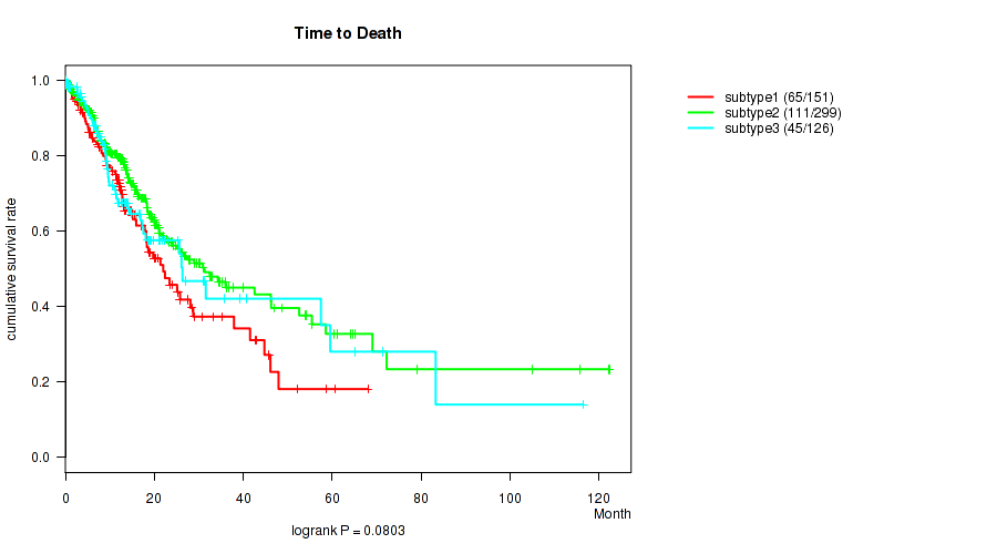 | Time to Death | logrank test |