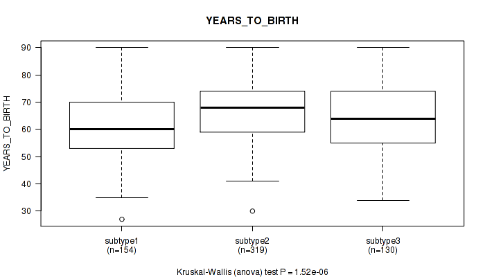 | YEARS TO BIRTH | Kruskal-Wallis (anova) |