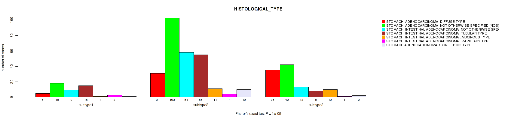 | HISTOLOGICAL TYPE | Fisher's exact test |