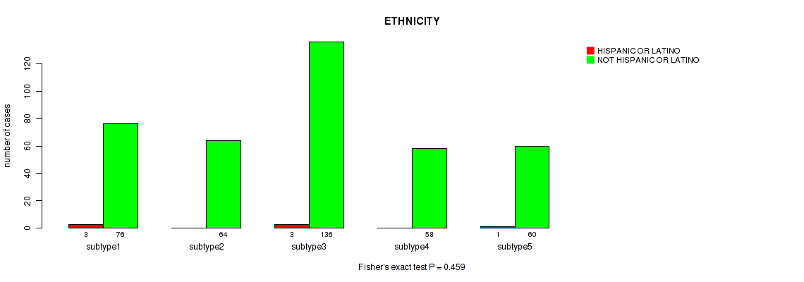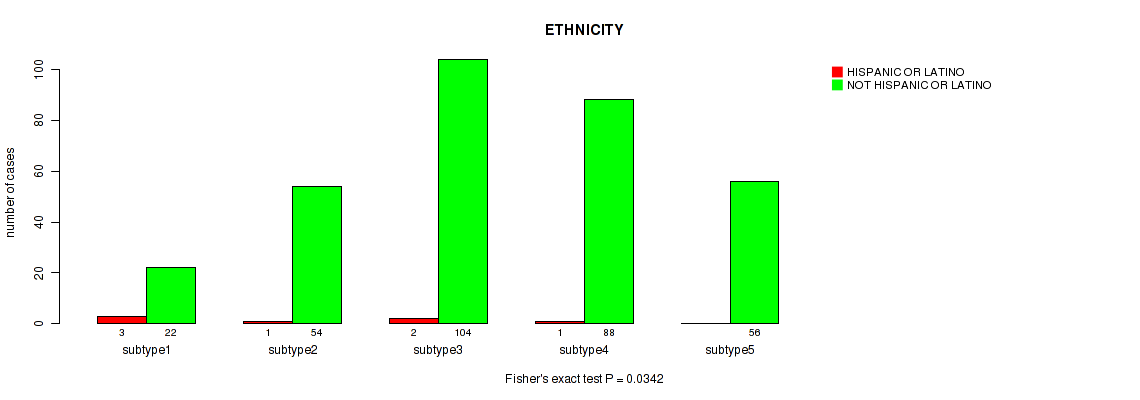 Figure S112. Get High-res Image Clustering Approach #8: 'MIRseq Mature cHierClus subtypes' versus Clinical Feature #14: 'ETHNICITY'